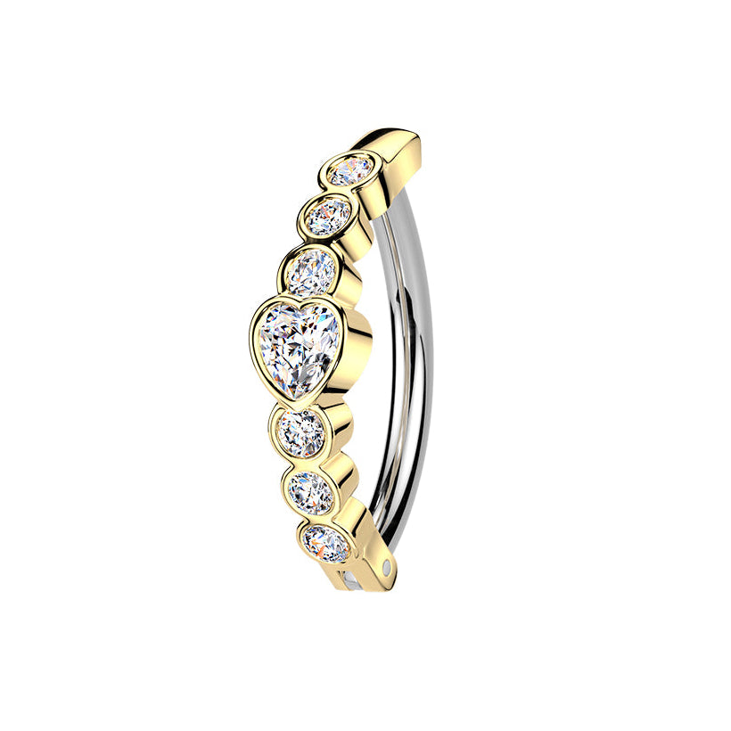 14 Gauge Hinged Crystal Hearts Belly Button Ring