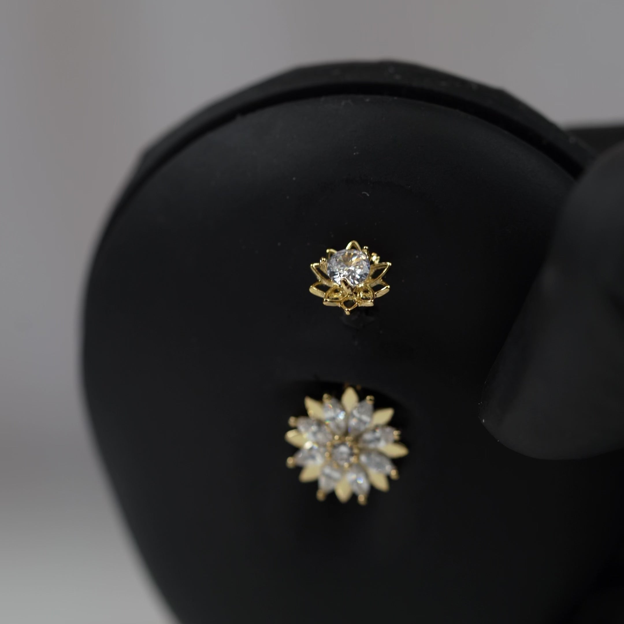 14 Gauge Internally Threaded Crystal Double Flower Belly Bar