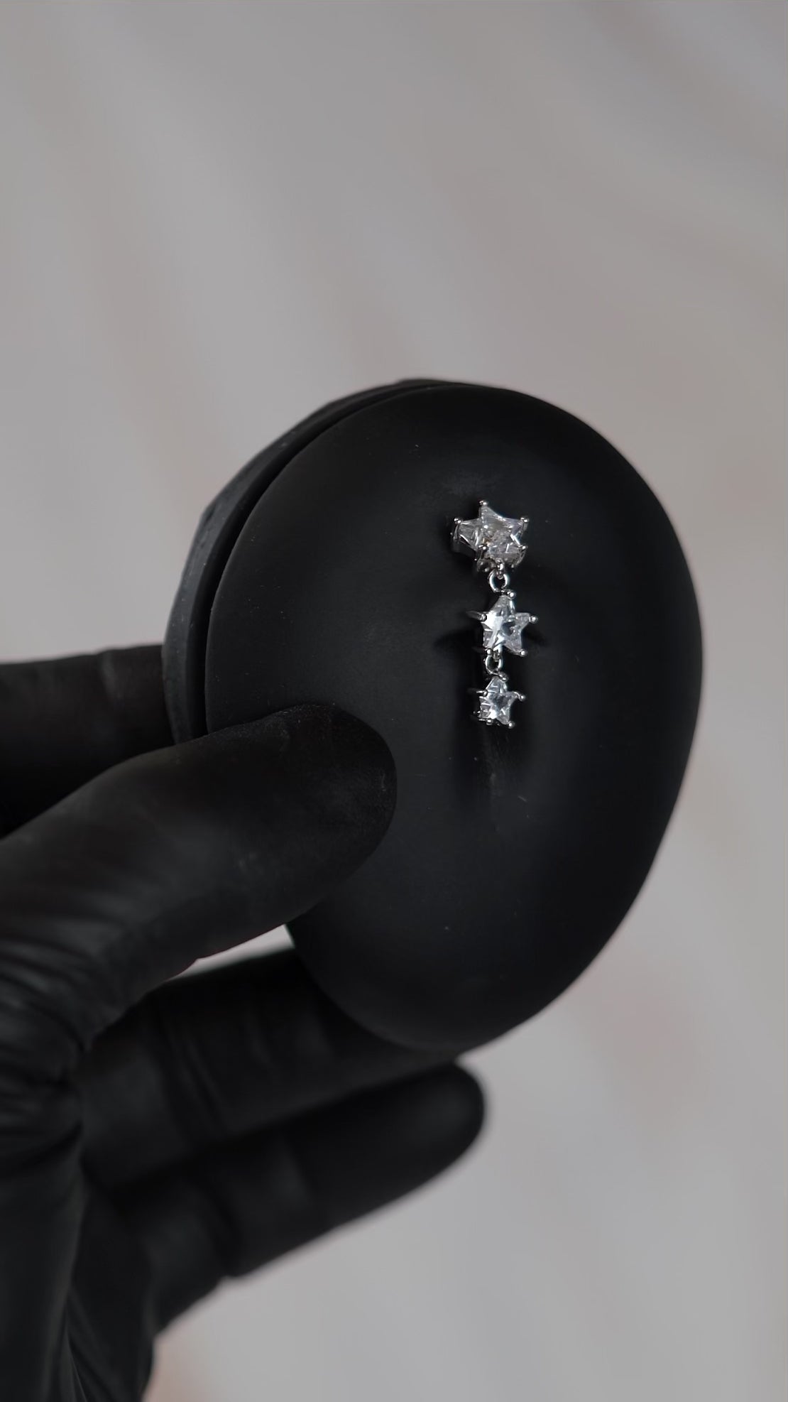 Your belly button piercing will be sure to sparkle whenever you wear this 14 gauge star shaped reverse belly button bar! Made with a surgical grade stainless steel curved barbell, this navel piercing features a trio of crystal dangling star shaped charms. Surgical grade steel is a great choice for most people with suitable for sensitive skin or allergies due to it's hypoallergenic properties.