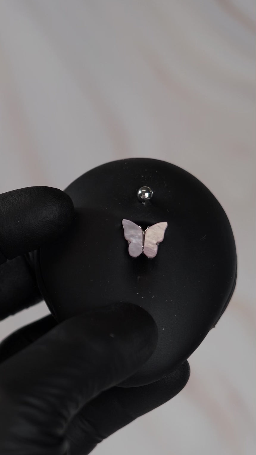 14 Gauge Silver Shell Covered Butterfly Belly Bar