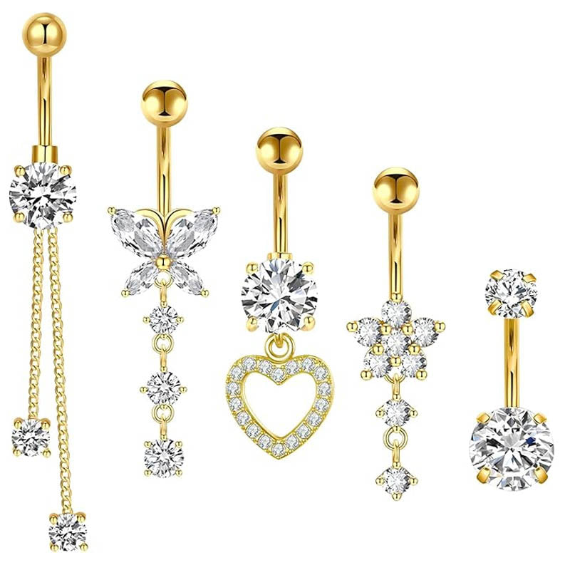 Multi Pack Of 5 Dangling Crystal Belly Button Bars