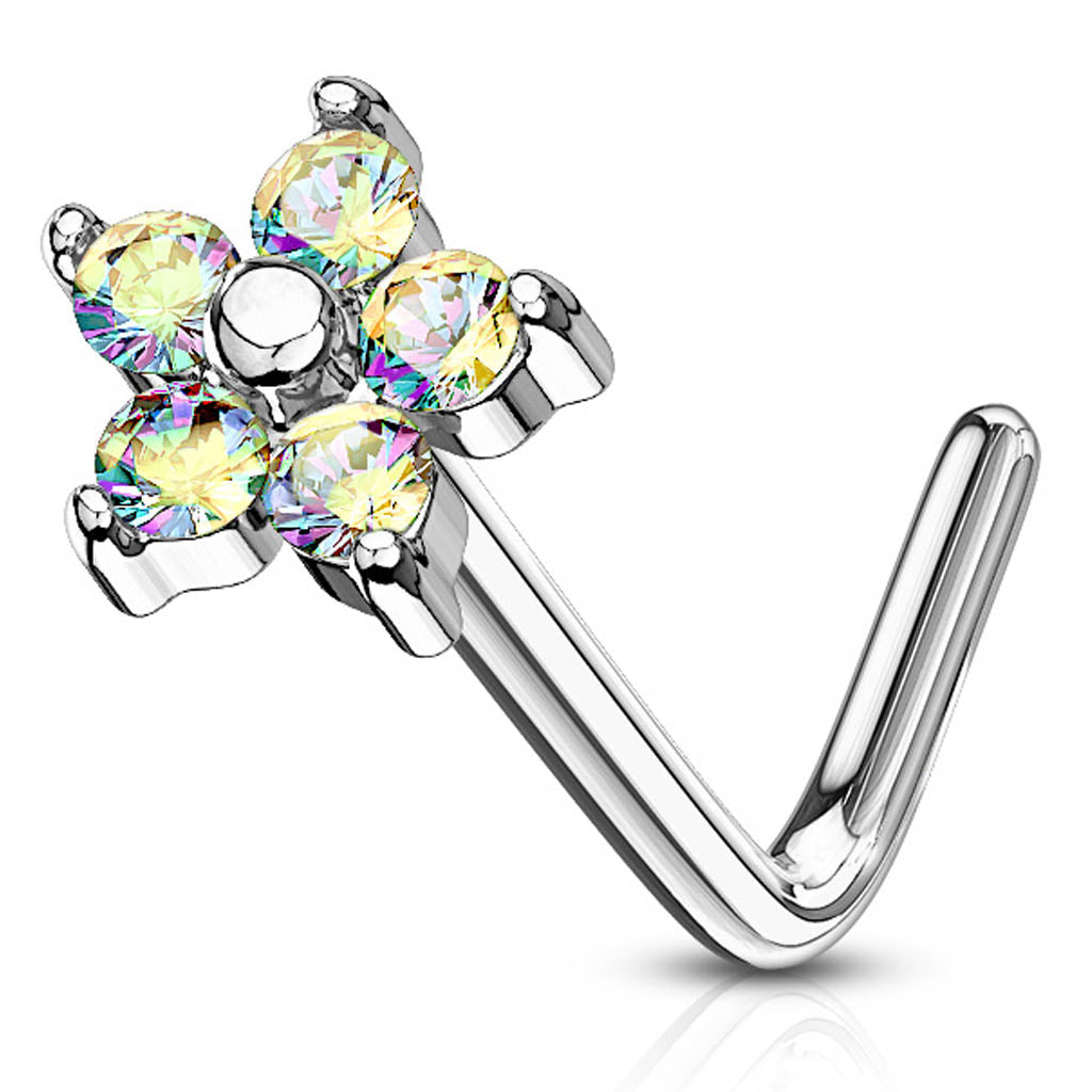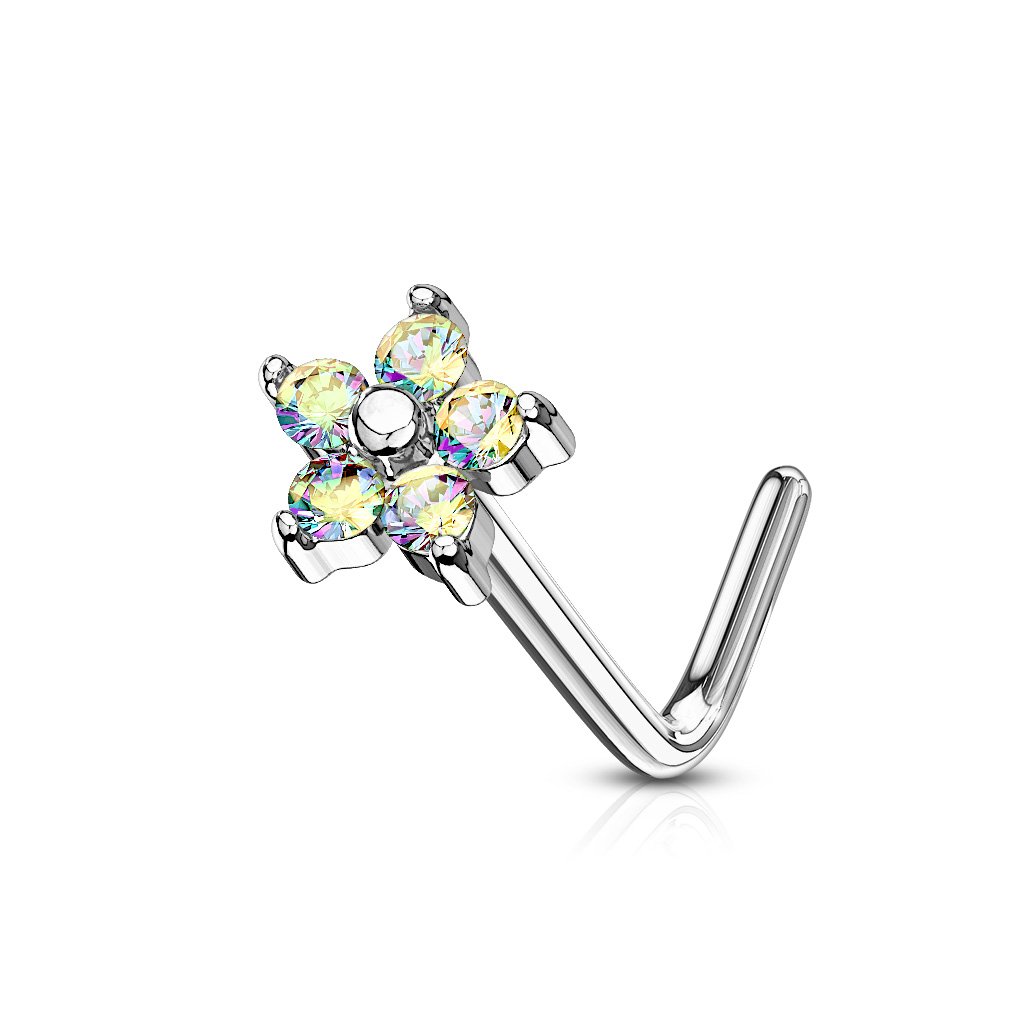 20 Gauge Five Petal Crystal Flower L-Bend Nose Stud