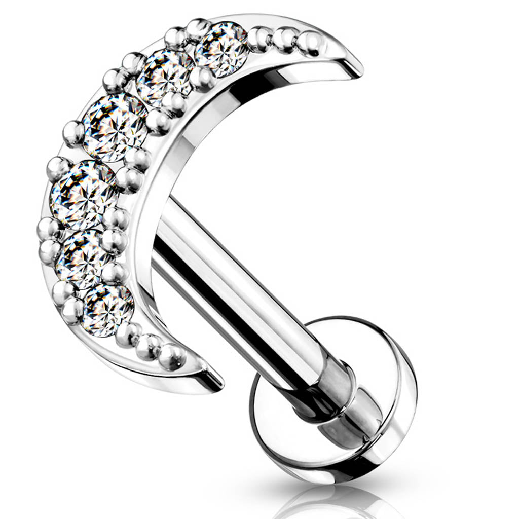 16 Gauge Internally Threaded Crystal Moon Stud