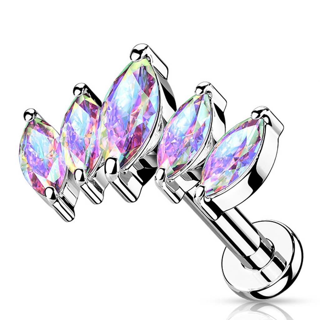 16 Gauge Internally Threaded Aurora Marquise Stud