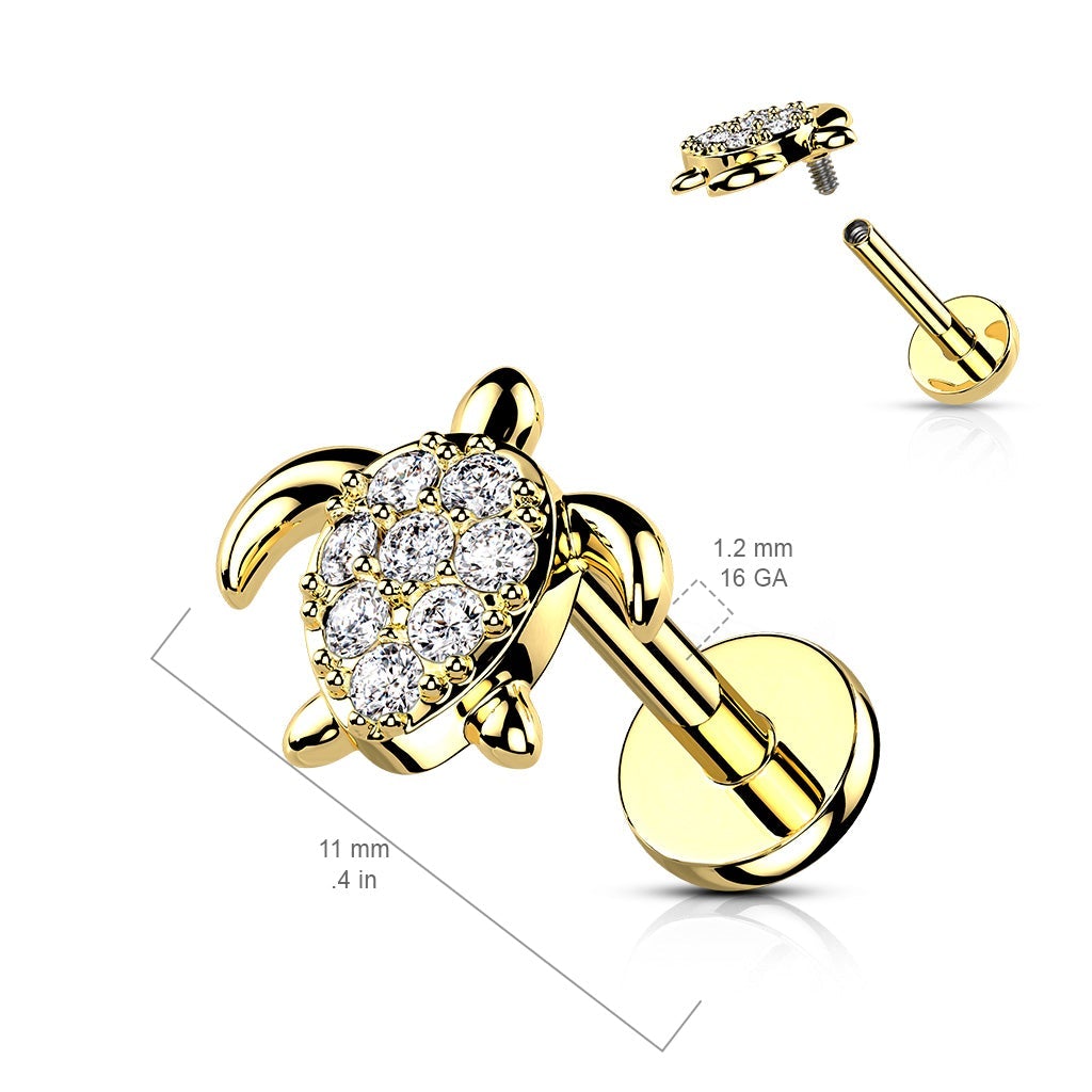 16 Gauge Internally Threaded Crystal Turtle Stud