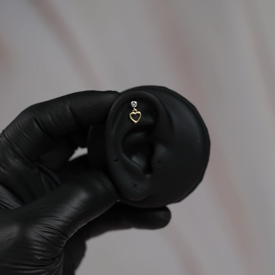 16 Gauge Threadless Dangling Hollow Heart Stud