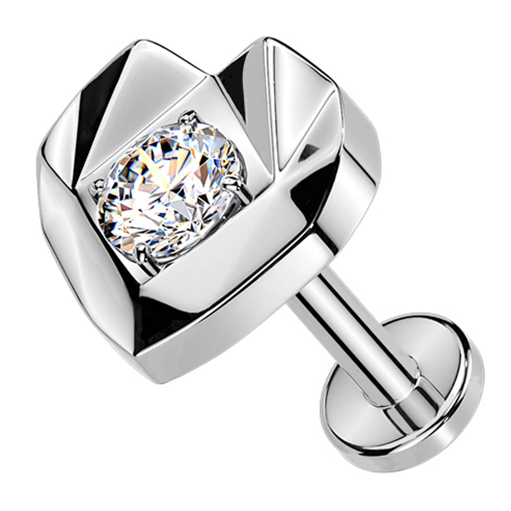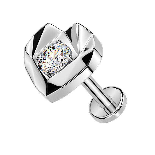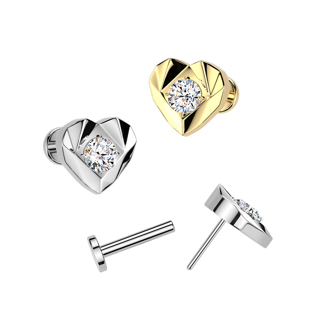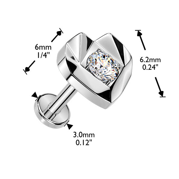 16 Gauge Threadless Titanium Faceted Crystal Heart Stud