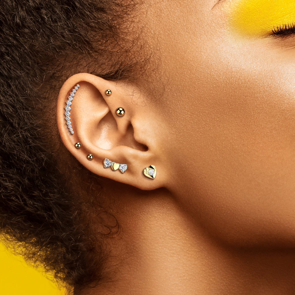 You'll sparkle every time you wear this crystal filled stud! This versatile stud features an easy to use, threadless crystal heart topper - you won't have to mess around with threads with this simple to use stud! This stud will work in multiple cartilage piercings including the tragus, helix, conch, and more. Titanium jewellery is hypoallergenic and won't tarnish, it's nickel free and perfect for those with sensitive skin or allergies - it's perfect to wear every day!