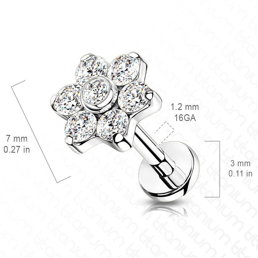 16 Gauge Titanium Crystal Flower Cartilage Stud