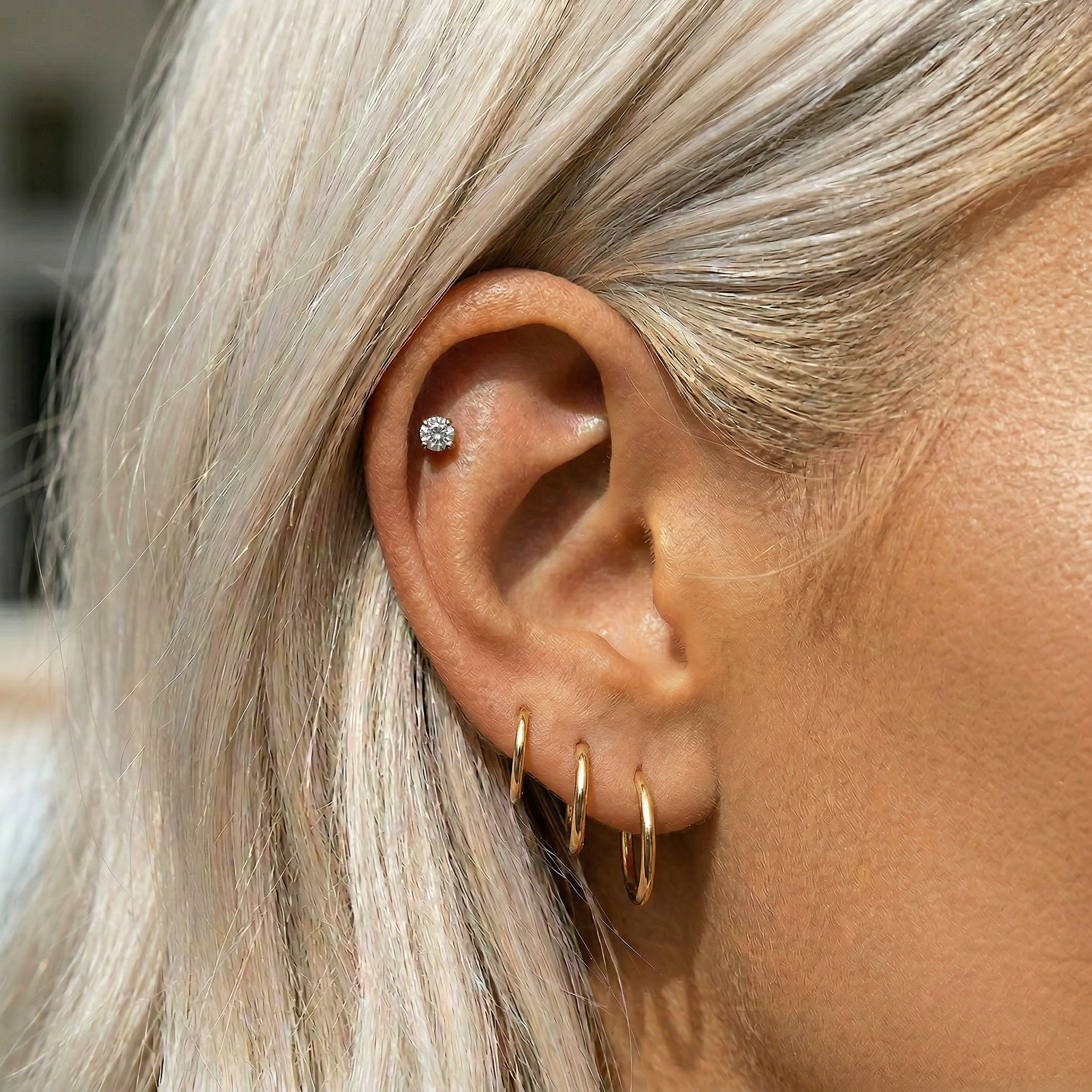 Adorn your piercings with versatile, yet beautifully simple stud. This durable titanium stud features an internally threaded 3MM round crystal gemstone at the end of the post. This piercing jewel offers a sturdy straight post that is made from durable implant grade titanium and features a comfortable flat back. This stud is suitable for a range of cartilage piercings as well as lips. Titanium jewellery is hypoallergenic and won't tarnish, it's nickel free and perfect for those with sensitive skin or allergies - it's perfect to wear every day!