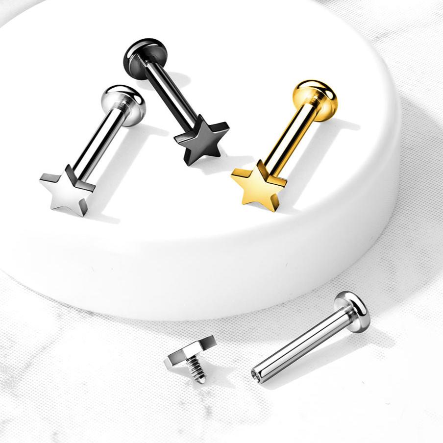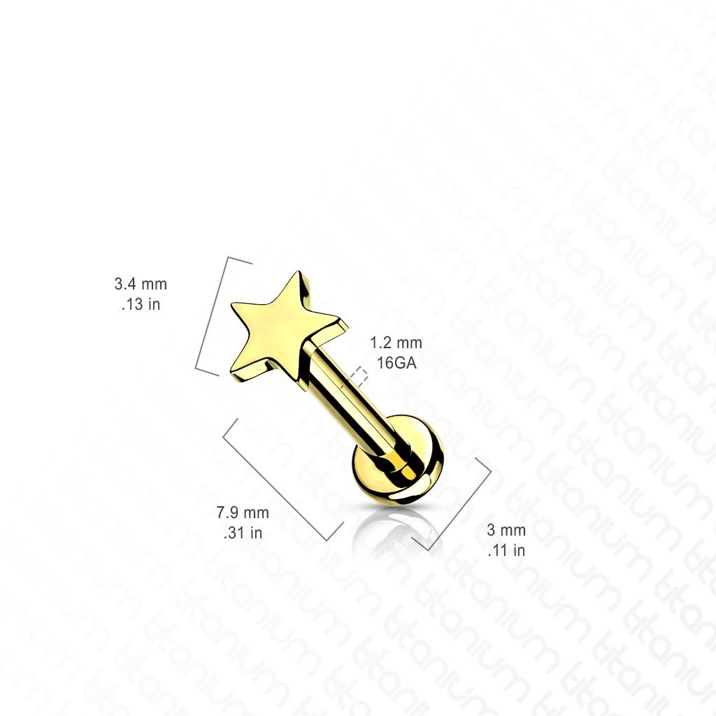 16 Gauge Internally Threaded Titanium Star Labret Stud