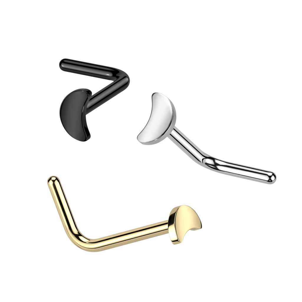 20 Gauge Titanium Moon Top L-Bend Nose Stud