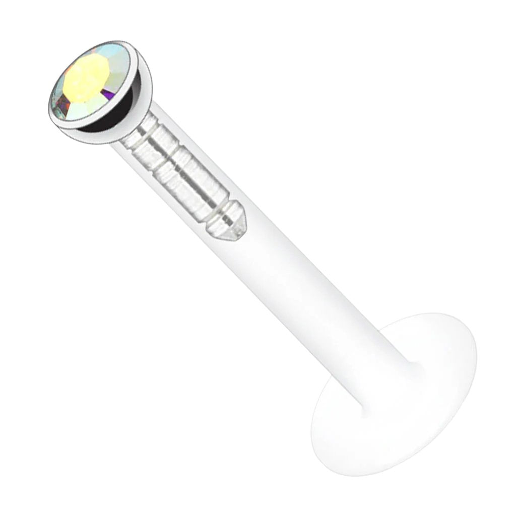 This versatile stud is suitable for a wide range of piercings, including cartilage, labret, medusa and monroe. This 8MM flat back stud is made from bioflex, which is a great choice for lip piercings as this soft, plastic style stud is less abrasive against teeth and gums. Available with a choice of easy to use, push fit colourful crystal toppers.