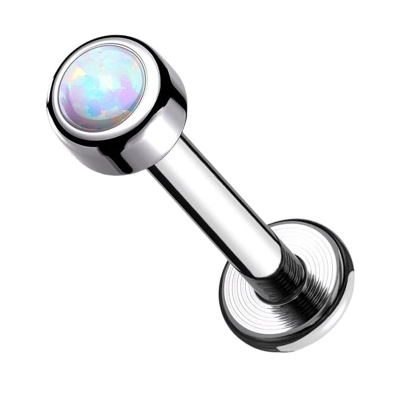 Adorn your piercings with this charming opal stud. If features a shimmering internally threaded opal tipped design and is created from durable implant grade titanium. This stud is suitable for a wide range cartilage and labret piercings. Titanium jewellery is hypoallergenic and won't tarnish, it's nickel free and perfect for those with sensitive skin or allergies - it's perfect to wear every day!