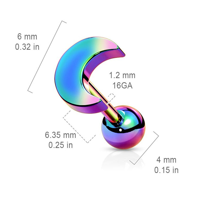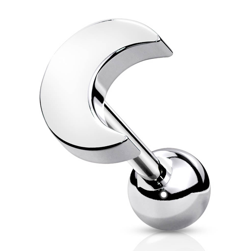 You'll be sure to love this little moon because it's perfect for every day wear! This durable surgical grade steel stud is hypoallergenic and water resistant - it won't tarnish or discolour! It features a flat moon shaped top and an externally threaded removable ball end to the rear and is suitable for a wide range of cartilage piercings.