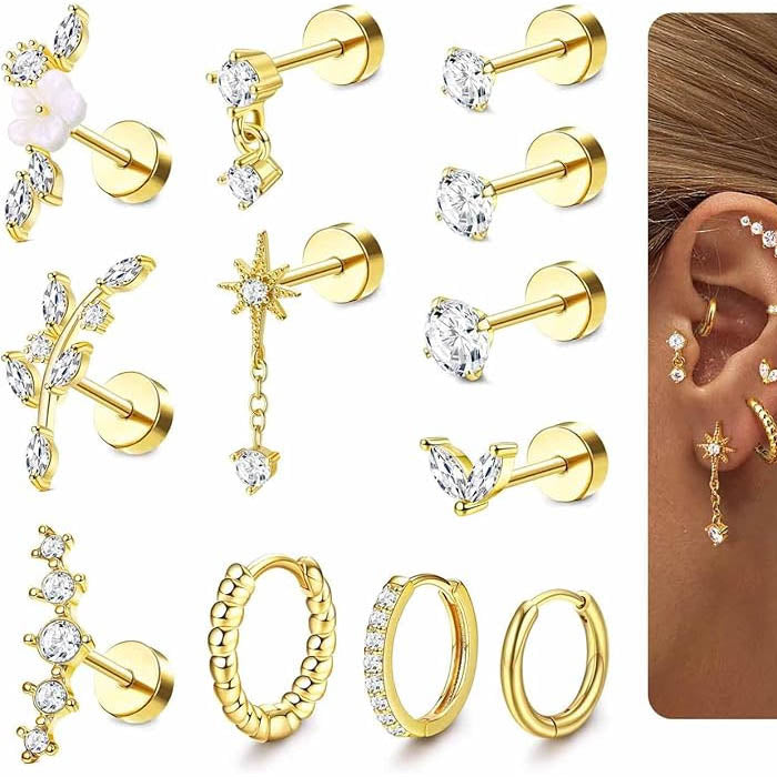 Adorn your ears with a different jewel every day with this set of 12 hoops and flat back studs! This set of durable surgical grade steel studs and hoops are suitable for a wide range of ear piercings including daith, tragus, helix plus lips and more! Surgical grade steel is a great choice for most people with suitable for sensitive skin or allergies due to it's hypoallergenic properties.