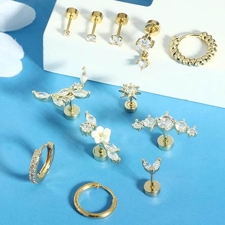 - Set of 12 of studs & hoops