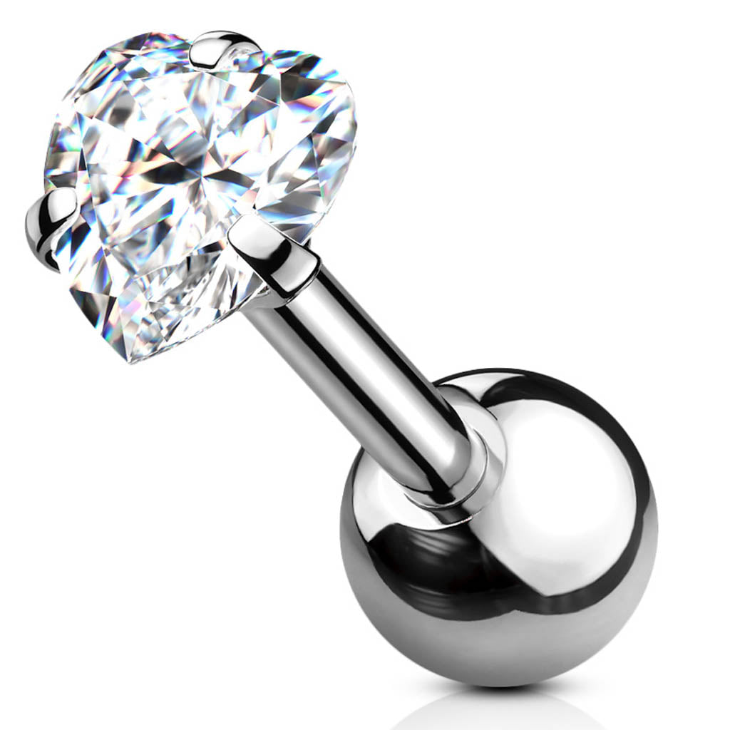 16 Gauge Hypoallergenic Crystal Heart Cartilage Stud