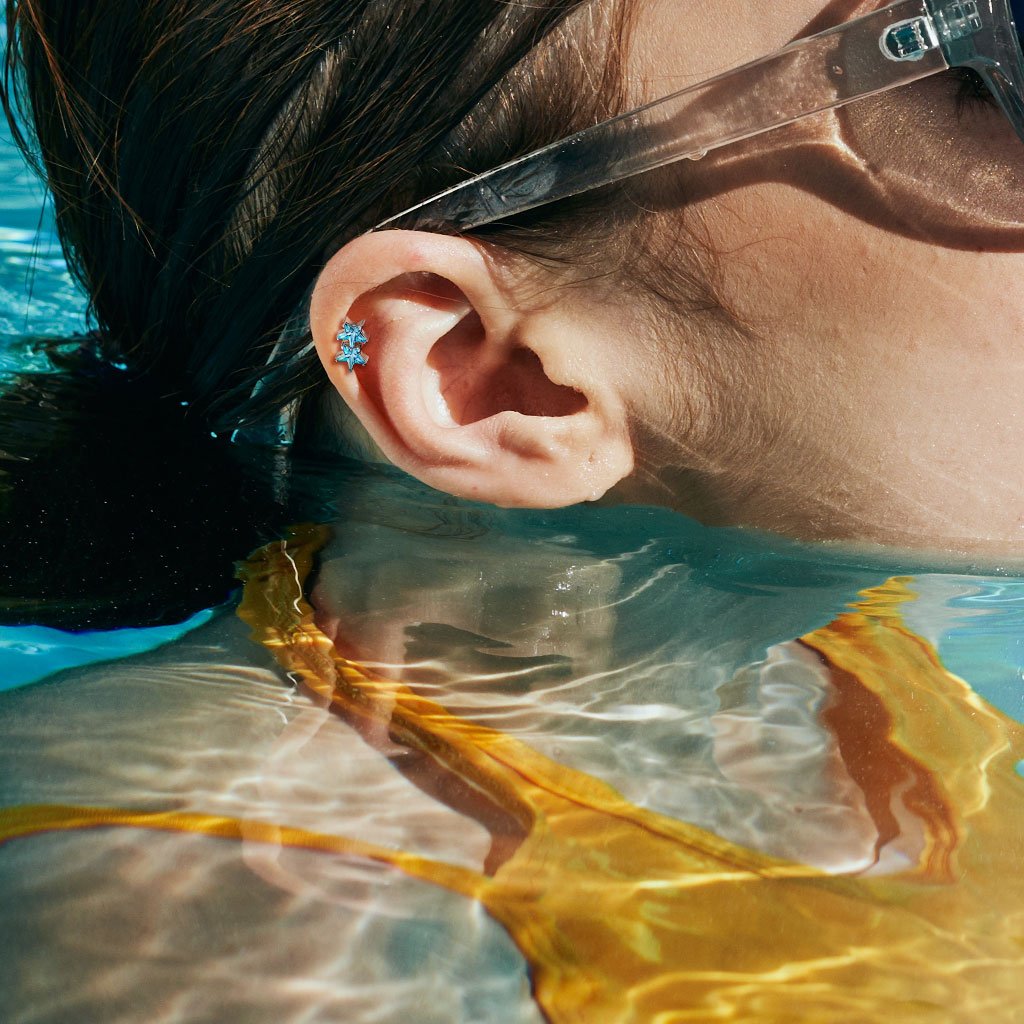 Your cartilage piercings will be sure to sparkle every time you wear this 16 gauge cartilage stud! This stud is made with a durable surgical grade steel straight post with a comfortable flat back end. It features an internally threaded pair of stars, filled with sparkling crystals. This crystal filled stud will work beautifully in multiple cartilage piercings including the tragus, helix, conch, as well as a range of labret piercings.