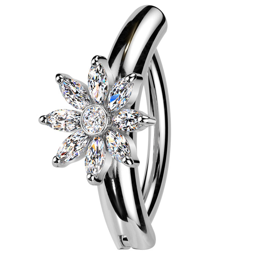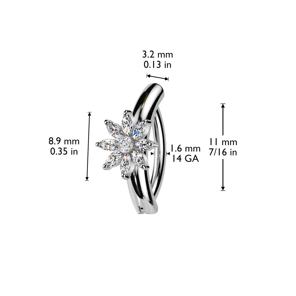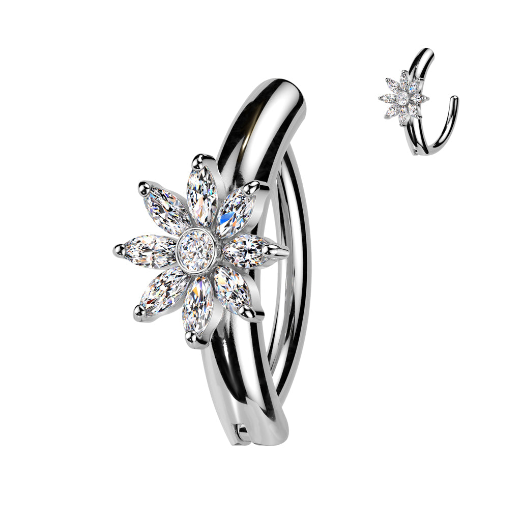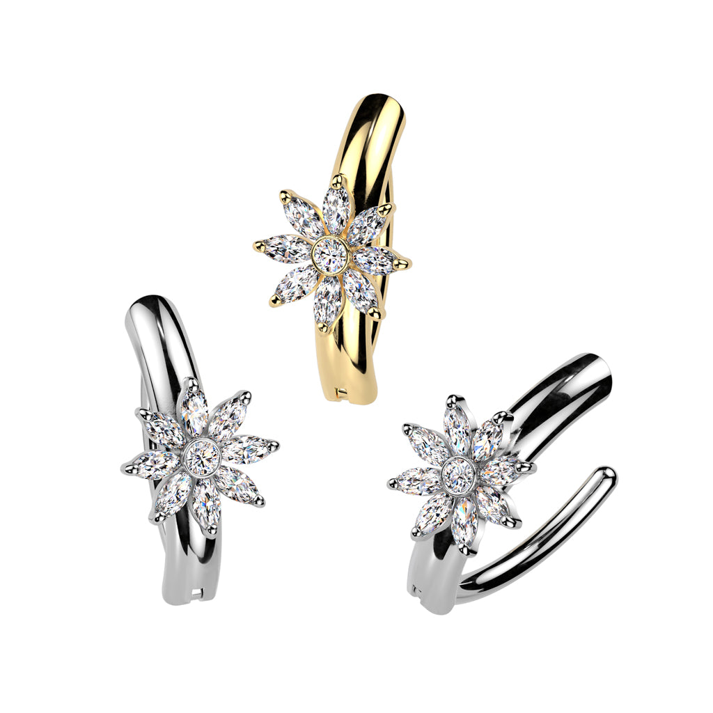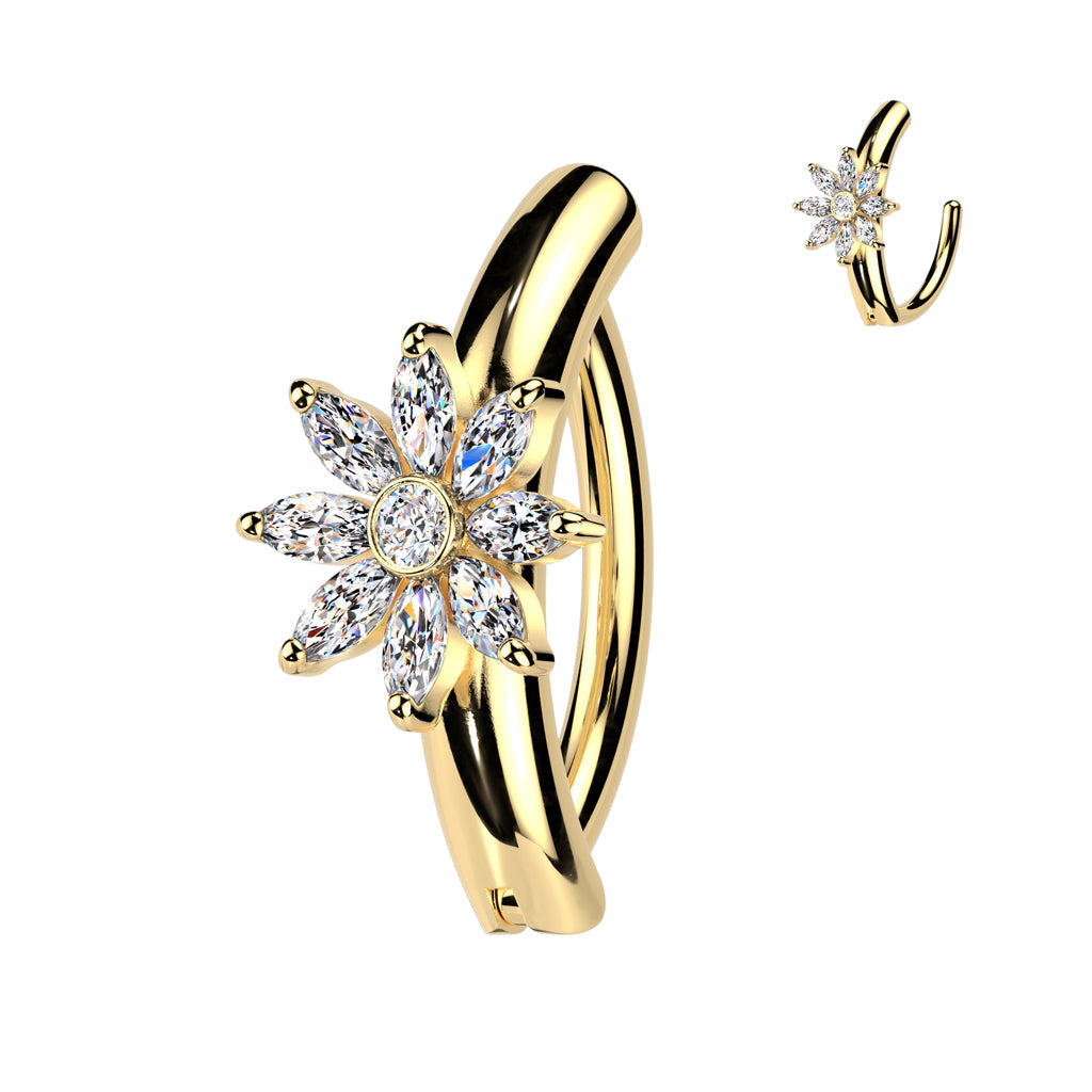 14 Gauge Hinged Crystal Flower Belly Button Ring