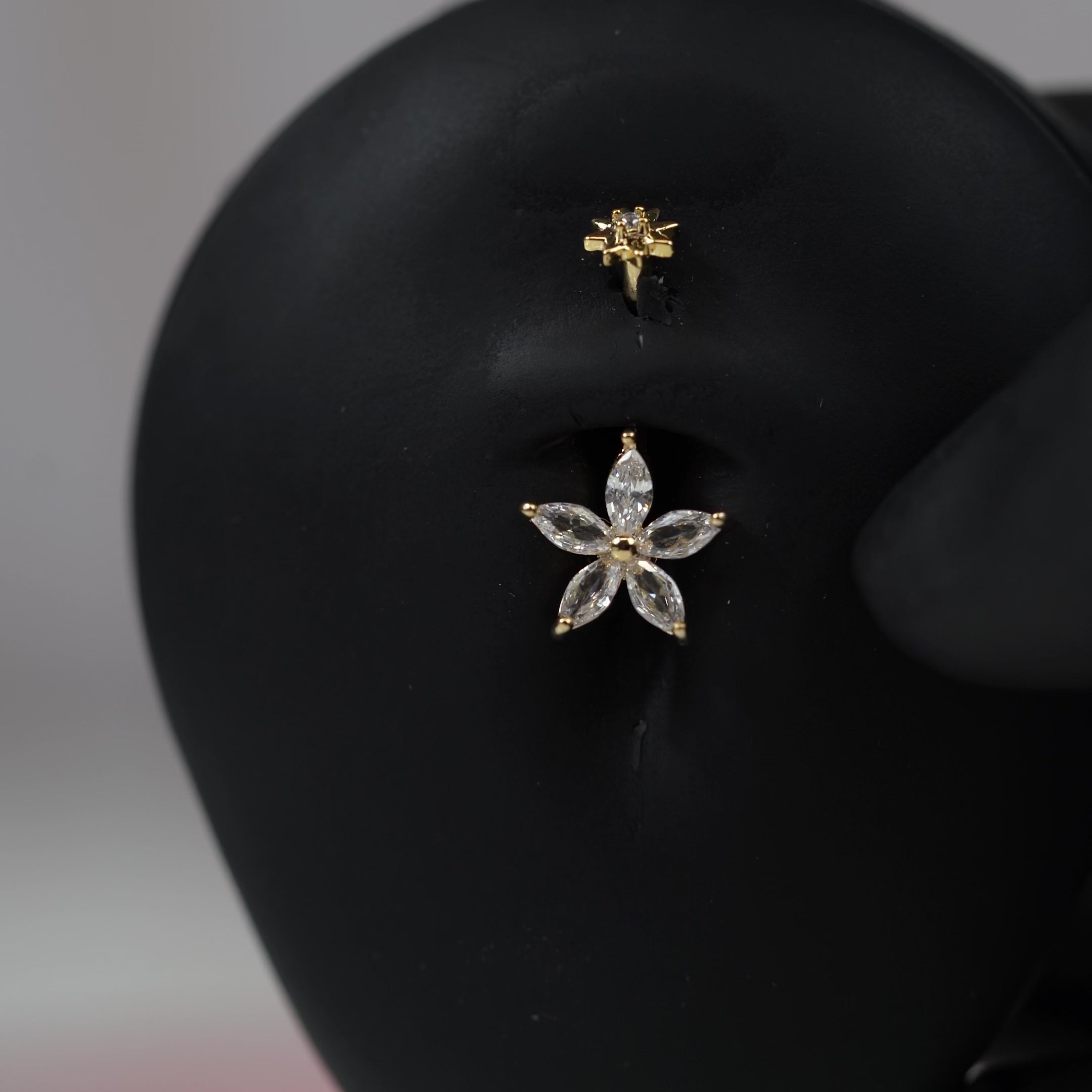 14 Gauge Hypoallergenic Internally Threaded Crystal Flower Belly Bar