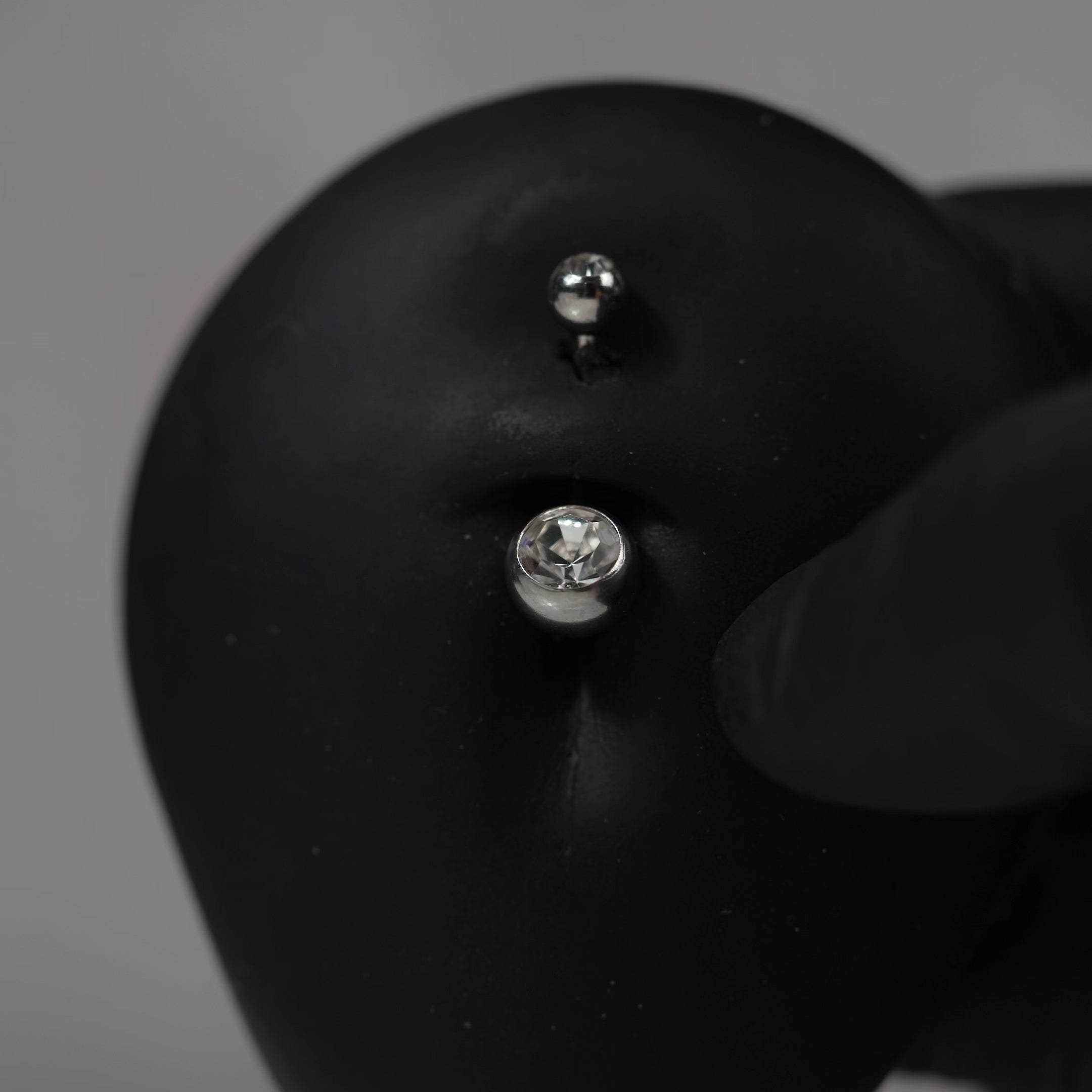 Really sparkle with this double crystal belly button bar - this mesmerising body jewel is created from durable implant grade titanium and finished with a pair of matching internally threaded crystals - one centre piece and one ball end. Titanium jewellery is hypoallergenic and won't tarnish, it's nickel free and perfect for those with sensitive skin or allergies - it's perfect to wear every day!