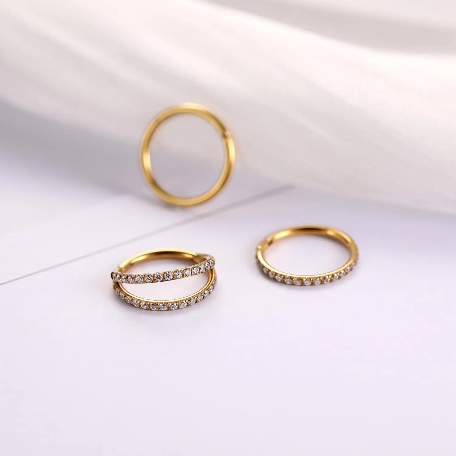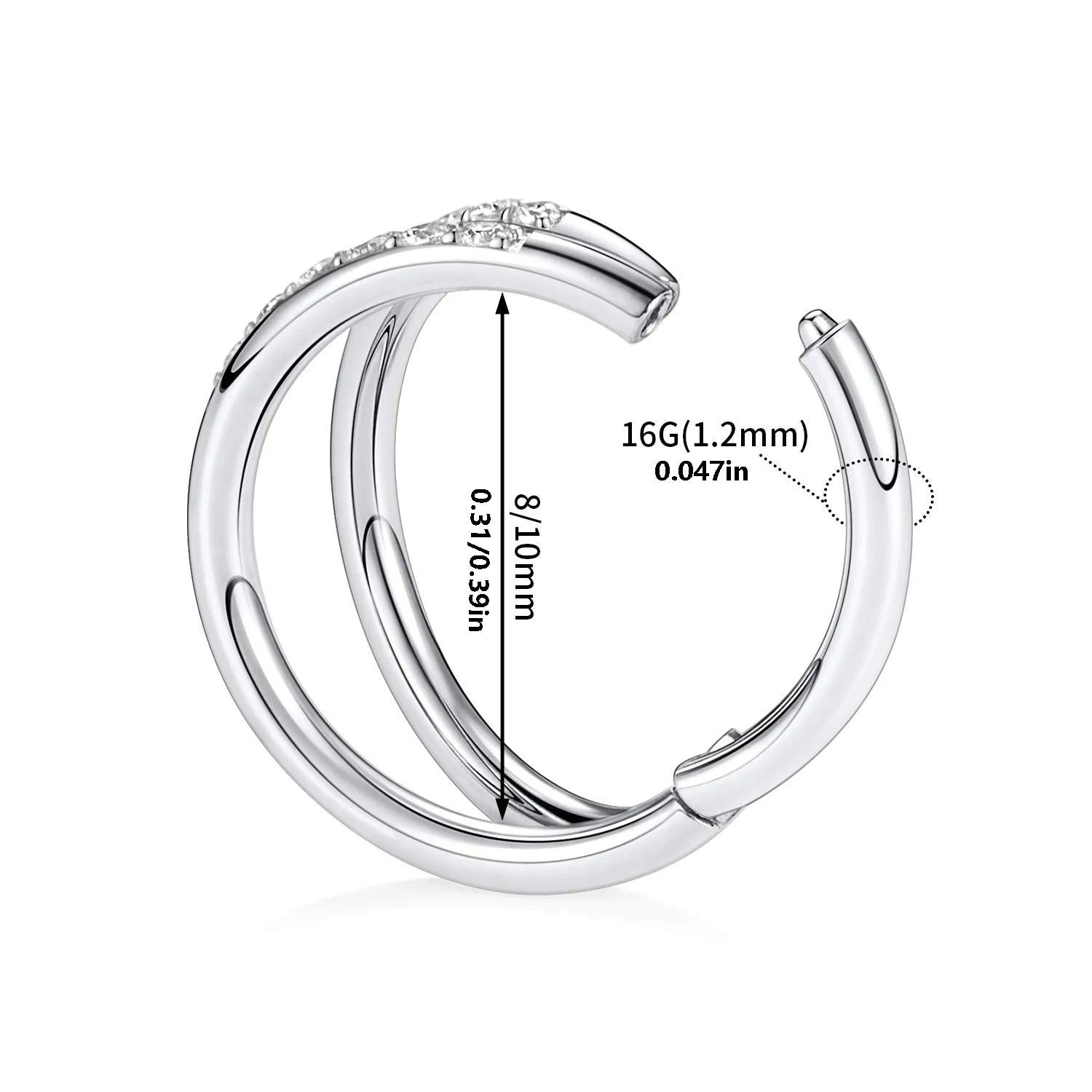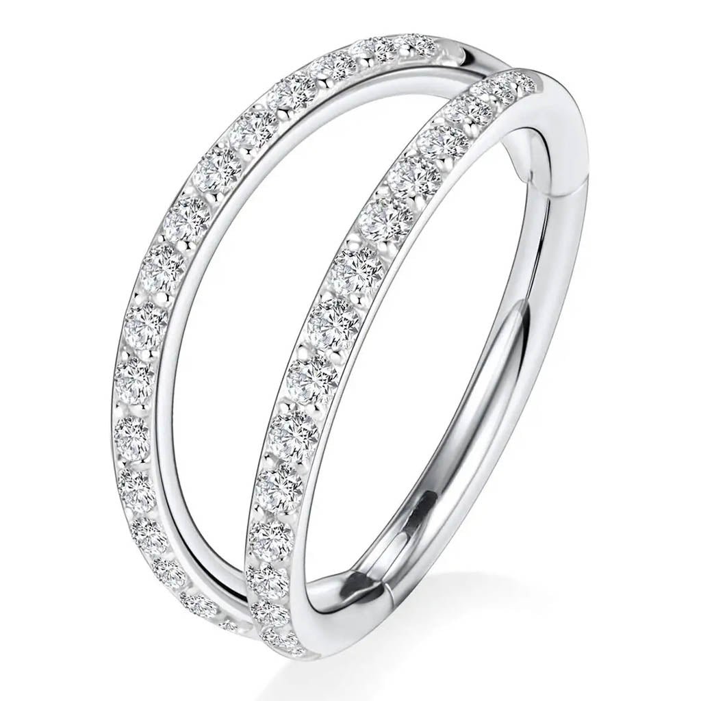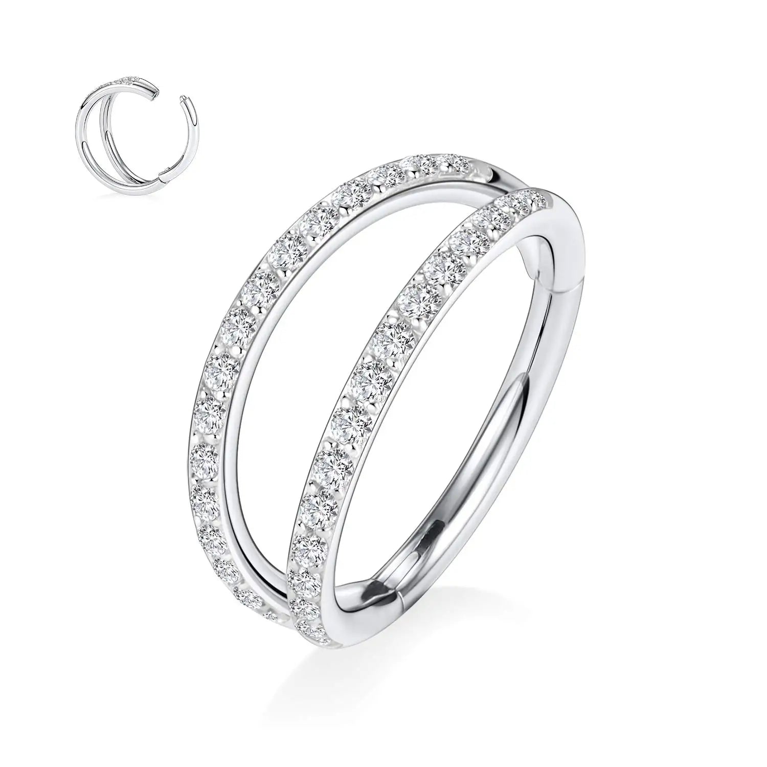 16 Gauge Hypoallergenic Double Crystal Hinged Hoop Ring