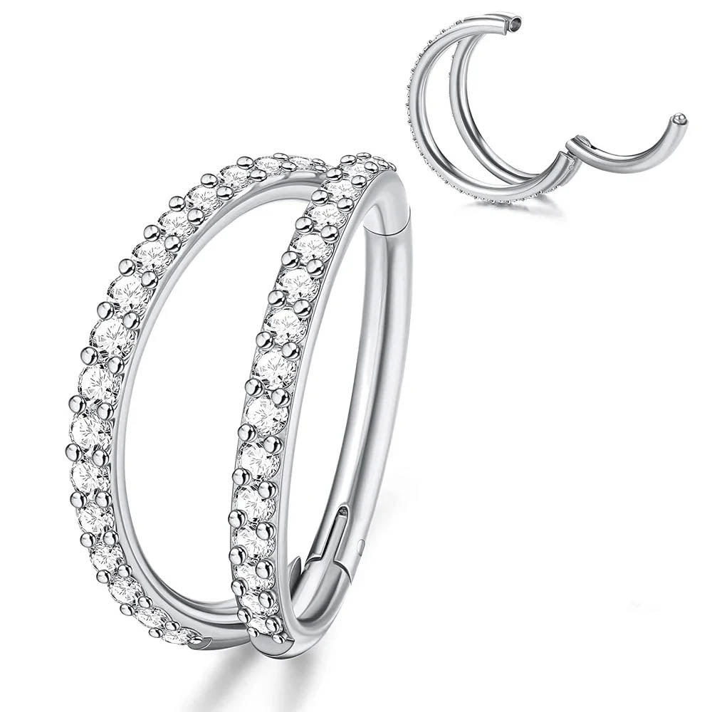16 Gauge Titanium Crystal Double Row Hinged Hoop Ring