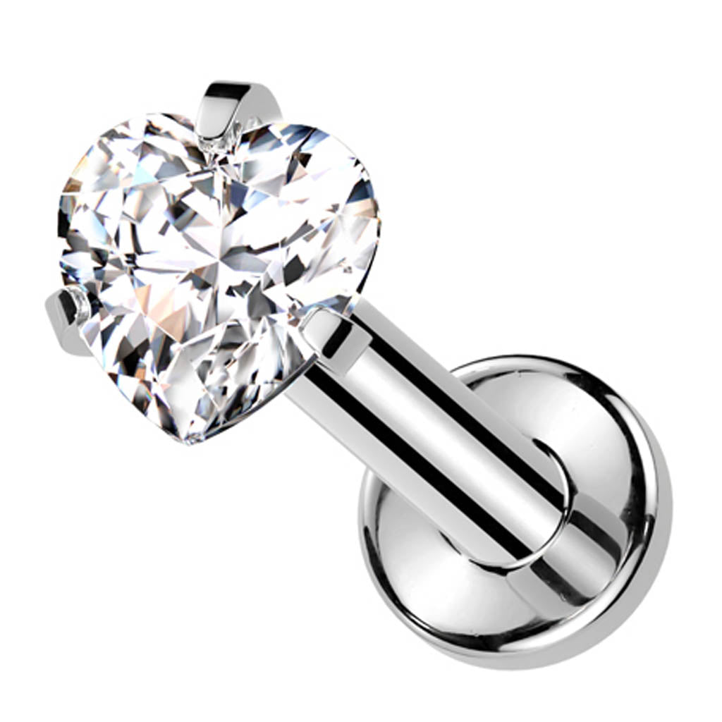 16 Gauge Titanium Prong Set Crystal Heart Stud