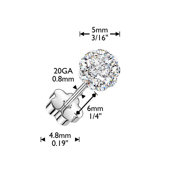 20 Gauge Hypoallergenic Crystal Ball Stud Earrings