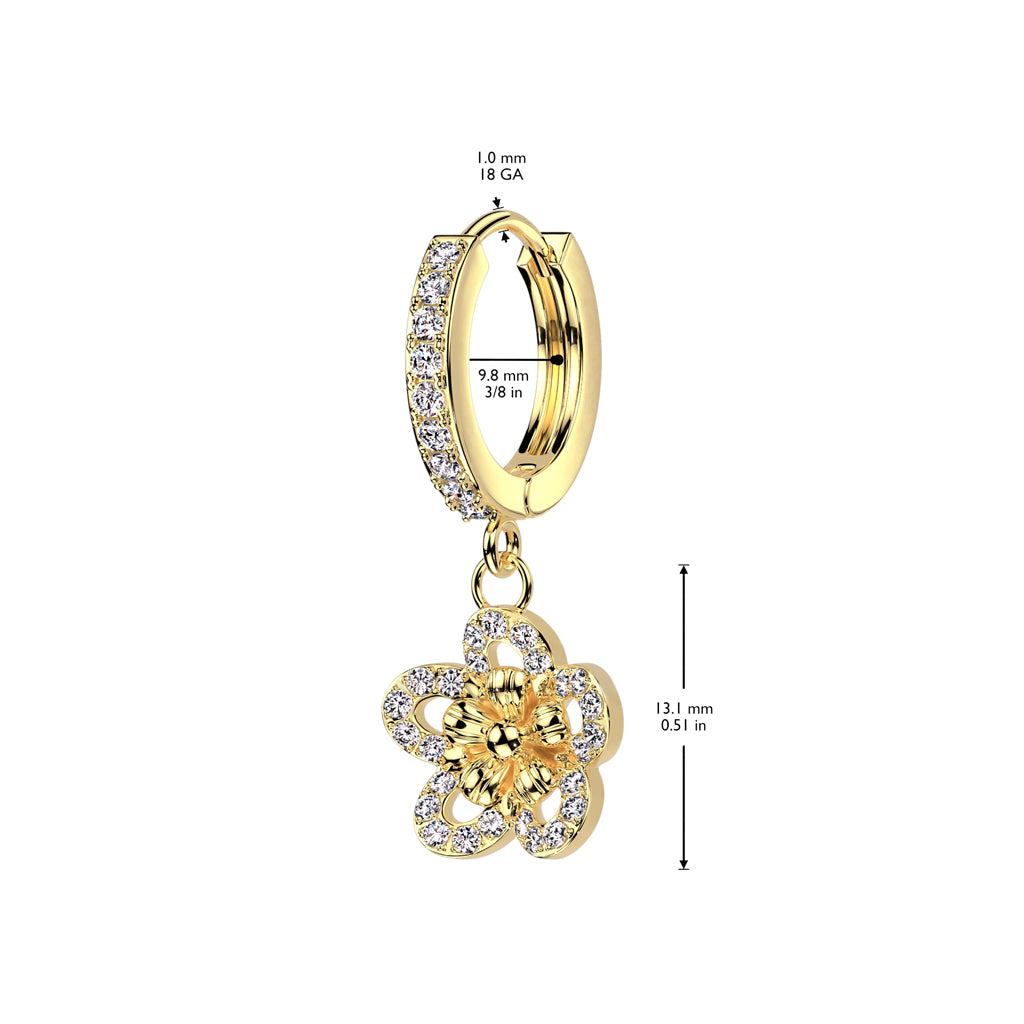 Hypoallergenic Dangling Crystal Flower Huggie Hoop Earrings