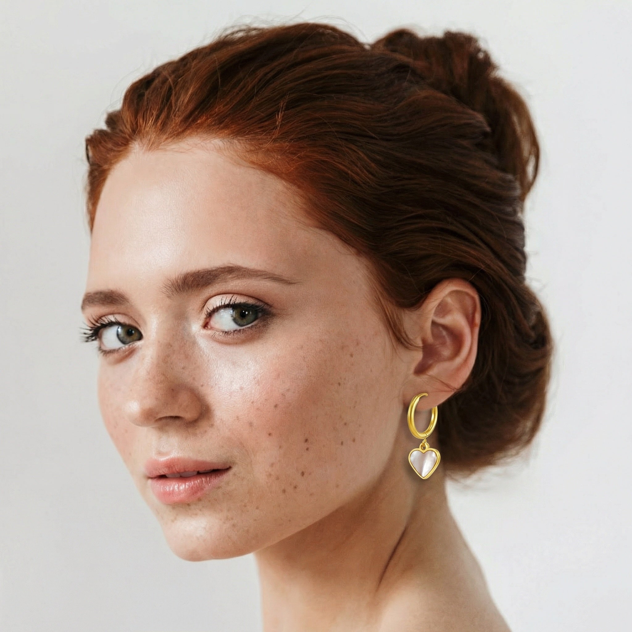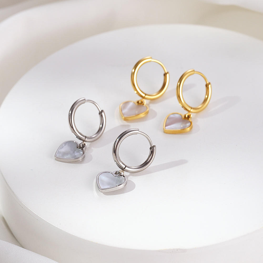 Hypoallergenic Dangling Pearl Heart Huggie Hoop Earrings