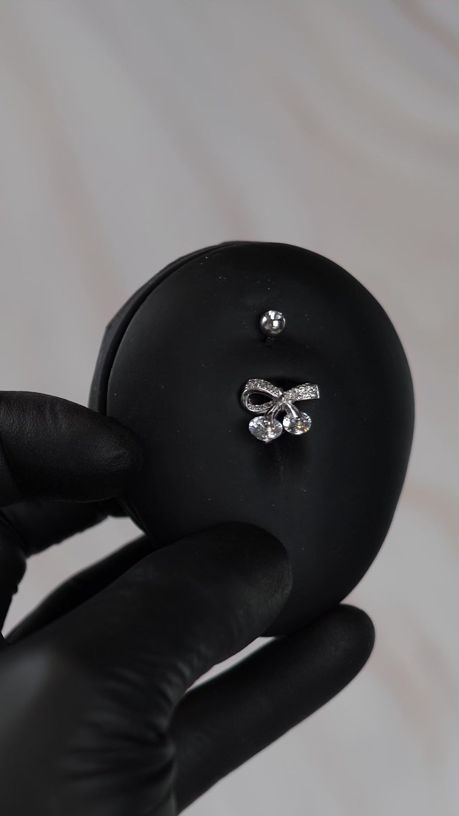 If you love your body jewellery to sparkle, then you'll just love this belly crystal filled button bar! This durable surgical steel curved barbell holds a dangling bow shaped charm, filled with tiny sparkling crystals!